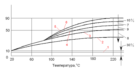 1 – режим истощения при естественной (пластовой) температуре; 2 – снижение вячкости; 3 – термическое расширение; 4 – дистилляция; 5 – газонапорный режим; 6 – изменение подвижности.