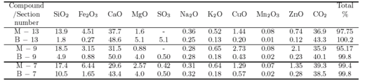 Химический состав отложений, выраженных в процентах от веса, приводится в Таблице 1.