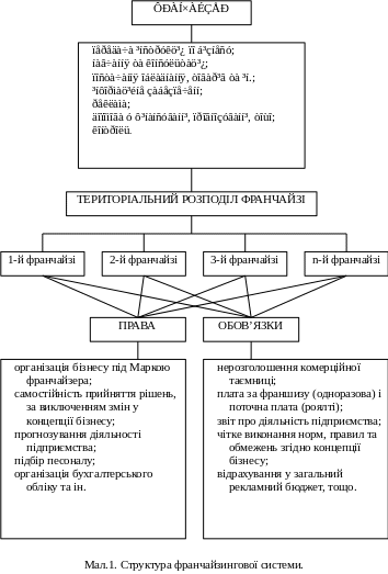 Структуру франчайзингової системи можна розглянути та проаналізувати за допомогою мал. 1.