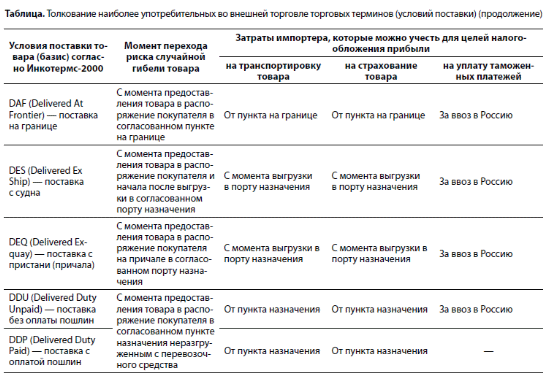 - в момент перехода риска случайной гибели товара (в соответствии с Инкотермс-2000);