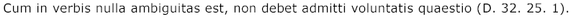 Классические юристы не отходили, однако, без нужды от грамматически-словесного толкования. При отсутствии в словах закона или сделки какой-либо двусмысленности недопустимо особо ставить вопрос о воле — quaestio voluntatis.