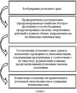К специальным задачам (схема 1), присущим только лишь данной отрасли права, можно отнести следующие: возбуждение уголовного дела; предварительное расследование; рассмотрение уголовного дела судом и назначение справедливого наказания лицам, совершившим преступления, в соответствии с их тяжестью, формой вины и иными, предусмотренными уголовным законом условиями; исключение возможности привлечения к уголовной ответственности и осуждения невиновных лиц.