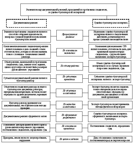 Рис.5. Различия между документальной ревизией, проводимой по требованию следователя, и судебно-бухгалтерской экспертизой