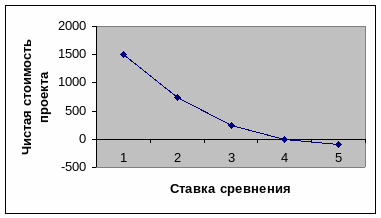 Зависимость чистой текущей стоимости от выбора ставки сравнения
