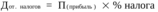 – долевой (устанавливается определенная доля налога, например, 1/8 часть от прибыли) + %.