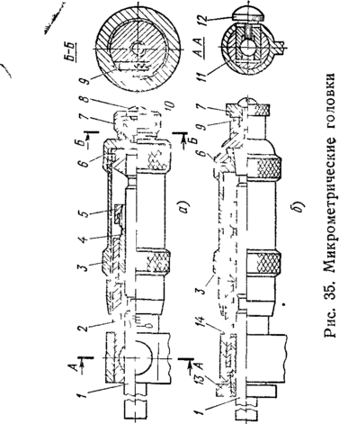 1З—винт крепления державки; 14—пружинное кольцо; 15—винт микроподачи для точной установки измерительной головки на размер