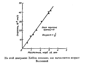 С помощью своей лестницы, которая помогла ему вычислить расстояние до далёких звезд, Хаббл получил в 1929 году значение Н, которое соответствовало поразительно малому возрасту — 2 миллиарда лет. Поразительным его можно считать потому, что результаты геологических исследований дают гораздо большее значение, и эти данные весьма надежны. Замешательство длилось недолго: Вальтер Бааде из обсерватории Маунт-Вилсон вскоре нашел ошибку в методике, с помощью которой Хаббл определял расстояние. Он пользовался зависимостью период — светимость для цефеид (чем больше период цефеид, тем больше абсолютная светимость) для определения расстояния до ближайших галактик, но звезды переменной светимости в этих галактиках не были обычными цефеидами и, следовательно, указанной зависимости не подчинялись. С поправками возраст Вселенной удваивался. Через несколько лет Сэндейдж заметил, что Хаббл принял скопления звезд за отдельные звезды в более отдаленных галактиках. С этими исправлениями возраст еще раз удвоился.