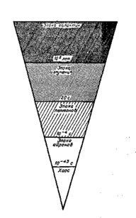 Посмотрим теперь, когда отказывает общая теория относительности; это происходит через 10(-43) с после начала отсчета времени (интервал, называемый план-ковским временем). Это как раз тот момент, когда задергивается «занавес»; после него во Вселенной царит полный хаос, но с помощью квантовой теории мы можем хотя бы грубо представить себе, что там происходило.