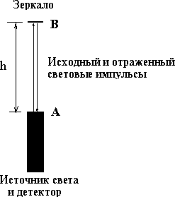 Синхронизацию часов, находящихся в двух разных точках пространства, Эйнштейн предложил проводить с помощью световых сигналов. Испустим из точки A в момент t1 короткий световой сигнал, который отразится от некоторого зеркала B и вернется в точку A в момент t2 (Рис. 4). Времена распространения сигнала туда и обратно конечны (скорость сигнала конечна!) и одинаковы (изотропия пространства!). Поэтому часы в точке B будут согласованы с показаниями часов в точке A в моменты испускания (t1) и возвращения (t2) сигнала соотношениями