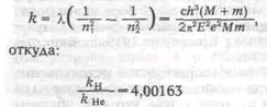 После опубликования статей Бора Фаулер обнаружил новые линии при разряде в трубке, заполненной водородом и гелием, которые, по его мнению, не укладываются в серию Бора. Бор уточнил теорию, введя движение ядра и электрона около общего центра массы. Тогда: