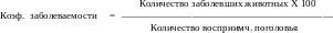| Год | Наличие восприимч погол | Коэф заболеваемости | Коэф падежа | Коэф убоя | Забол голов | Из них голов | ||