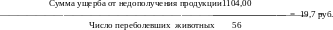 Для лечения бронхопневмонии телят в хозяйстве используется препарат Фармазин- 50. В 1999 году стоимость одного флакона ( 50 мл) составила 80 руб. На одного теленка необходимо затратить: 4 мл- суточная доза, курс лечения 5 дней, т.е. на весь курс- 20 мл. Стоимость такого лечения составит: (20 мл х 80 руб.): 50 мл = 32 руб. Всего в 1999 году заболело 69 голов. 32 руб. х 69 гол. = 2208 руб.
