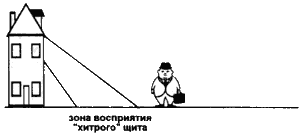А теперь представьте, что такая надпись выполнена на фасаде высокого здания. Причем наверху. Пешеход поднимает голову. И в то время, когда на обычном щите уже ничего не видно, на "хитром" щите появляется: