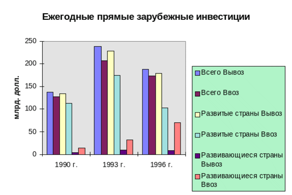 Рис. 1.2. Диаграмма ежегодных прямых зарубежных инвестиций по группам стран