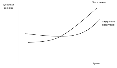 Для предприятий важную роль играет изучение зависимости между суммой прибыли и амортизации и общим объемом инвестиций. В том случае, когда это соотношение имеет устойчивую тенденцию к повышению, растет уровень самофинансирования. Начиная с того момента, когда указанное соотношение превышает единицу, накопления опережают внутренние инвестиции. Эта разница может использоваться для долгосрочных финансовых вложений.