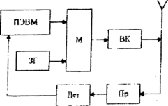 Мал.2. Структурна схема обробім інформищ/а: ЗГ — генеремар яесущЛ частоти, що задає, М — модулятор, Пр — нрийлит інфврмщи, Вк — жадний каскад-передачі коди, Дет — детектор