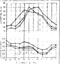 Мол. 3. Динаміка добових надоїв і жирності молока при використанні даХпАних установок: 1 — АДМ-3 (Латвія); 2 — М-622 "Імпульса" (Німеччина); 3 — МВС-12 (Україна)