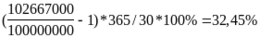 Сам индекс отражает обобщенную доходность по отношению к предыдущему дню. Однако доходность вложений за определенный период можно рассчитать с помощью несложной формулы:
