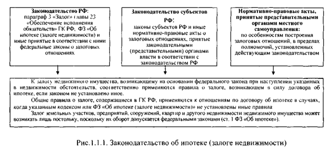 Нормы, регулирующие ипотеку, содержатся не только в ФЗ «Об ипотеке», но и в ГК РФ. Согласно п.2 ст.334 ГК РФ общие правила Кодекса о залоге применяются к ипотеке лишь в случаях, когда самим ГК РФ или законом «Об ипотеке» не установлены иные правила. Таким образом, несмотря на то, что ГК РФ содержит ряд специальных норм об ипотеке (п. 2-3 ст.339, п. 2-5 ст.340, п.1 ст.349 и др.), основной массив норм, регулирующих ипотеку, содержится в ФЗ «Об ипотеке».