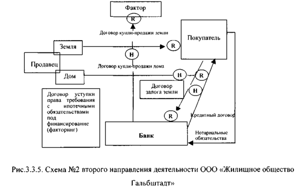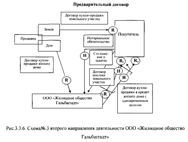 1. Покупатель самостоятельно либо при содействии ООО «Жилищное общество Гальбштадт» находит удовлетворяющий его жилой дом с земельным участком, которые их собственник имеет намерение продать. ООО «Жилищное общество Гальбштадт» проводит юридическую и экономическую оценку предмета сделки. В случае согласия ООО «Жилищное общество Гальбштадт» стороны подписывают предварительный договор. Данная схема напоминает лизинговые операции. Однако схема лизинга не может быть применена к жилому фонду, поскольку согласно действующему законодательству (включая федеральный закон «О лизинге» от 29 октября 1998г. № 164-ФЗ) жилой фонд не может быть предметом лизинга, так как он предназначен для проживания граждан, а не для предпринимательской деятельности.