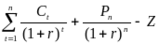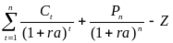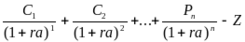 , где С1, С2 ¾ очередные денежные поступления (выплаты, которые получает владелец ценной бумаги после прохождения определенного периода времени); ra – банковская процентная ставка, исчисленная в виде десятичной дроби, соответствующая периоду, в течение которого владелец ценной бумаги получает очередные поступления от этой бумаги; Pn ¾ цена погашения ценной бумаги; и – количество периодов, в течение которых производятся выплаты владельцу ценной бумаги от момента ее приобретения до момента погашения; Z ¾ затраты владельца, связанные с приобретением и хранением ценной бумаги.