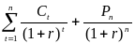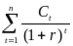, где t ¾ порядковый номер денежного поступления, получаемого владельцем ценной бумаги; n ¾ общее количество денежных поступлений Сt, Сt ¾ величина, сумма денежного поступления с номером t, приносимого ценной бумагой ее владельцу, когда наступает срок этого поступления (с учетом налоговых удержаний); r ¾ средняя процентная годовая ставка (исчисленная в виде десятичной дроби), выплачиваемая банками по депозитам.