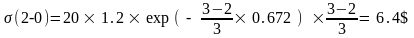 C(2-0) = 1200*exp(-(3-2)*0.672/3) + 200 = 1159.2$, (3.44)