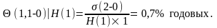 Теперь бумага полностью идентифицирована. Случайный процесс ее доходности имеет параметры, которые определяются по формулам (3.18), (3.19). В частности, на момент погашения бумаги Т = 1, C(2) = 1000$, (1+1) = 0, (1+1) = 0, и R(1,1) = (1000-820)/(820*1) = 21.95% годовых – неслучайная величина.