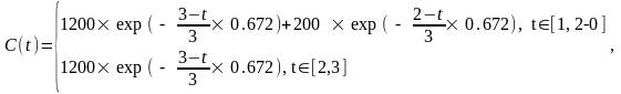 С(t) = 1000*exp(-(2-t)*0.3567/2), t [0, 2]. (3.21)