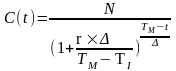 C(1.5) = 1000*exp(-(2-1.5)*0.3567/2) = 914.7$, (3.23)