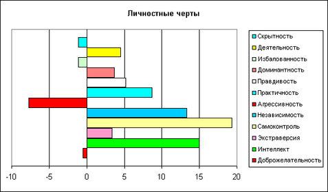 Основные характеристики - высокая степень Самоконтроля, Интеллекта и Независимости. Повышенная Практичность и Правдивость при пониженной Агрессивности.