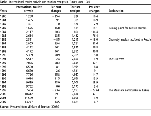 In the following table the history of Turkish tourism since the year of 1980 is demonstrated graphically.
