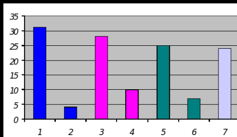В первой колонке представлены слова, значение которых было предложено установить анкетируемым, а в следующих четырех колонках отражено количество слов, смысл которых был верно определен. Более наглядно результаты представлены в диаграмме (см. рисунок), где 1, 3, 5 и 7 столбцы отражают количество человек, знающих минимальное количество англицизмов, значение которых предлагалось определить, это число мы условно приняли за 5 и менее. А 2, 4, 6 и 8 столбцы- количество человек, знающих 25 и более слов в пяти возрастных группах.