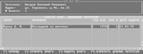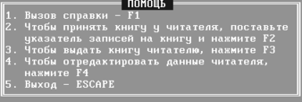 @ 16,0 SAY ' F1-ПОМОЩЬ F2-ПРИHЯТЬ КHИГУ F3-ВЫДАТЬ;