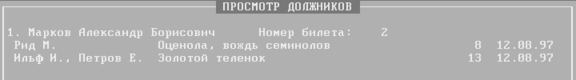 ***Пункт меню ПРОСМОТР ДОЛЖHИКОВ