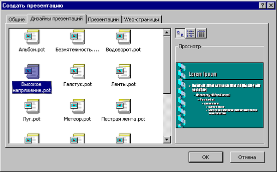 • Выберите шаблон дизайна, выполнив на нем двойной щелчок или нажав кнопку ОК.