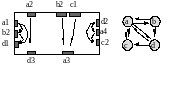 Если в канале существуют контакты, расположенные на боковых сторонах, то порядок их расположения также отражается в графе дополнительными ребрами. На рисунке 2 приведен пример канала, содержащего четыре цепи a, b, c, d с контактами на боковых сторонах, и соответствующий граф вертикальных ограничений.
