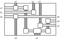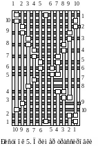 В общем случае итерации повторяются до тех пор, пока не будут удалены все циклы. Граф, рассмотренный в нашем примере, был приведен к ациклическому виду за один шаг. После этого была решена задача укладки горизонтальных сегментов в канале. Результат канальной трассировки показан на рисунке 4. Необходимо отметить, что это решение не удается получить ранее известными методами.