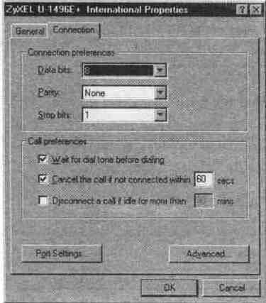 Опытный пользователь может добавить свои АТ-команды в строке ввода "Extra settings" меню "Advanced Connection Settings" (рис. 13.6). В этом случае установленные пользователем команды будут посланы модему в последнюю очередь непосредственно перед набором номера и установлением соединения.