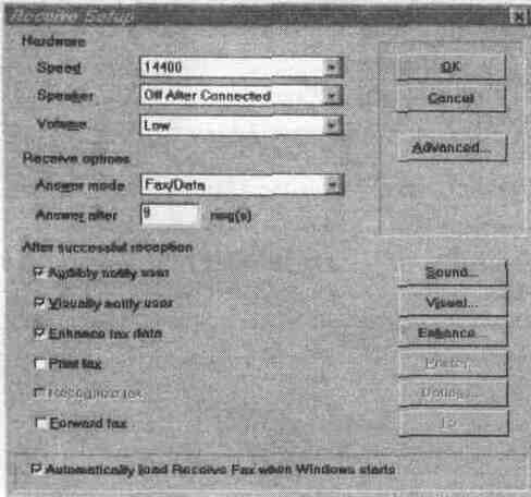 Для задания режима приема факсов устанавливаются следующие параметры (рис. 13.9):
