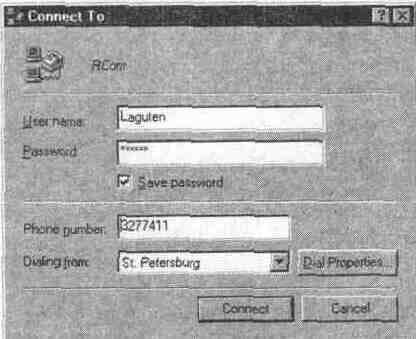 Рис. 13.11. Установка связи средствами Dial-Up Networking Windows'95