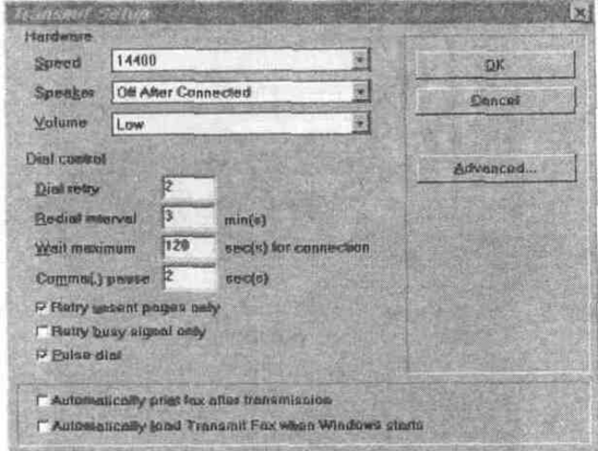 Кроме перечисленных выше параметров, программы передачи факсимильных сообщений используют ряд специфических установок. К ним относятся: