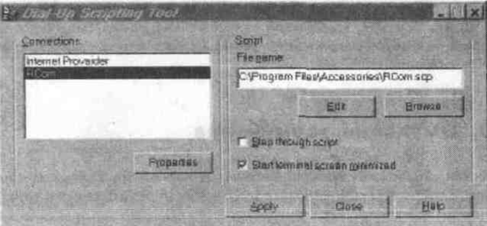 Наиболее известными Script-языками являются SALT (Quick Link II Fax), SALT II (WinTelix), Aspect (Procomm Plus), SLIQ (QmodemPro for Windows'95) и др. В качестве простого примера использоватгя Script-команд рассмотрим применение свободно распространяемой утилиты Dial-Up Scripting Tool, предназначенной для автоматизации сетевых соединений (Dial-Up ) в среде Widows'95.