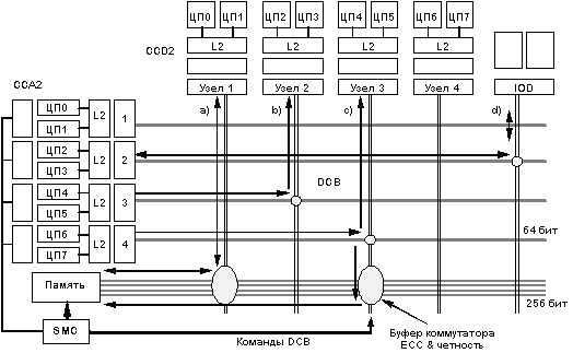 CCD2 - сдвоенный контроллер данных кэш-памяти; IOD - дочерняя плата ввода/вывода;