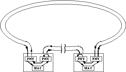 Рис. 2.1. Реконфигурация колец FDDI при отказе