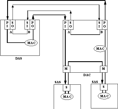 Станции, которые имеют один MAC-узел, называются SM (Single MAC) станциями, а станции, которые имеют два MAC-узла, называются DM (Dual MAC) станциями.