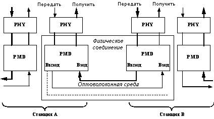 Физическое соединение - основной строительный блок сети FDDI. Типичная структура физического соединения представлена на рисунке 2.10.