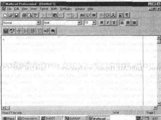 Рис. 1. 4 Экран системы MathCAD с очищенным окном редактирования