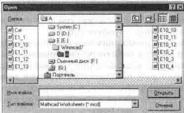 Диалоговое окно поиска файлов — типичное для Windows-приложений. С его помощью можно установить дисковый накопитель, просмотреть файловую систему текущего диска, установить каталог и найти файл. Затем, после активизации кнопки ОК диалогового окна, документ будет загружен и с ним можно начинать работу, например просматривая его листинг. Обычно по умолчанию работа идет в автоматическом режиме, так что в документе будут представлены не только задание, но и результаты вычислений.