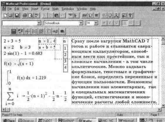 Интересно отметить, что с версией MathCAD PLUS 7 0 можно использовать документы, подготовленные в среде предшествующей версии Это позволяет считать последние версии систем практически совместимыми